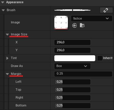 9-slicing as a standard technique to scale a background image dynamically to its content, while keeping scaling artifacts to a minimum. Unreal UMG supports nine slicing, but unfortunately, like so many things in Unreal, it is neither well documented nor intuitively to use. So lets digg into it: