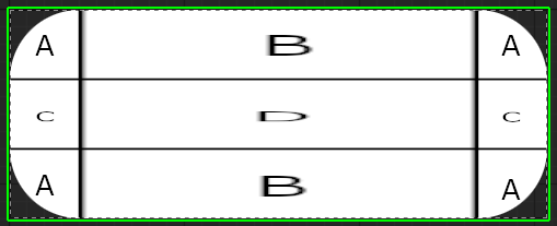 B: the top and bottom middle areas will only be scaled horizontally, their height will not change